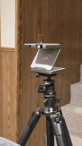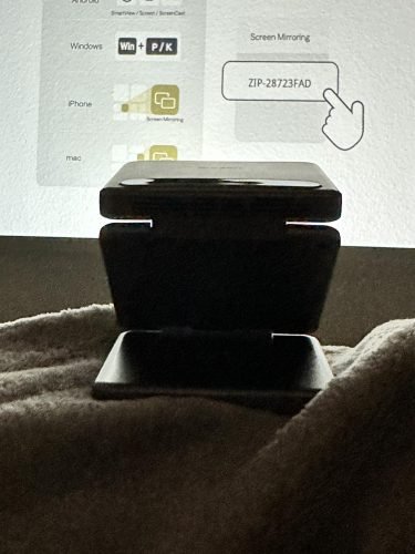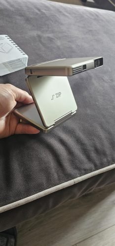 Usually, I would need to use a tabletop tripod to position my other projectors, or they would need an internet connection. With the ZIP, I can position it by adjusting the hinges, and then I connect to it using my phone's data or Wi-Fi connection.