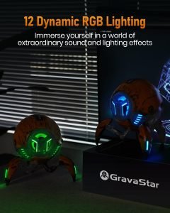 • 【BUILT-IN LIGHT SHOW】Get the party started with GravaStar’s 6 dynamic RGB lights. Set it to a single color, automatically change the colors gradually, or even light up your room to the beat of your music. Mars Pro sets the mood of your room.