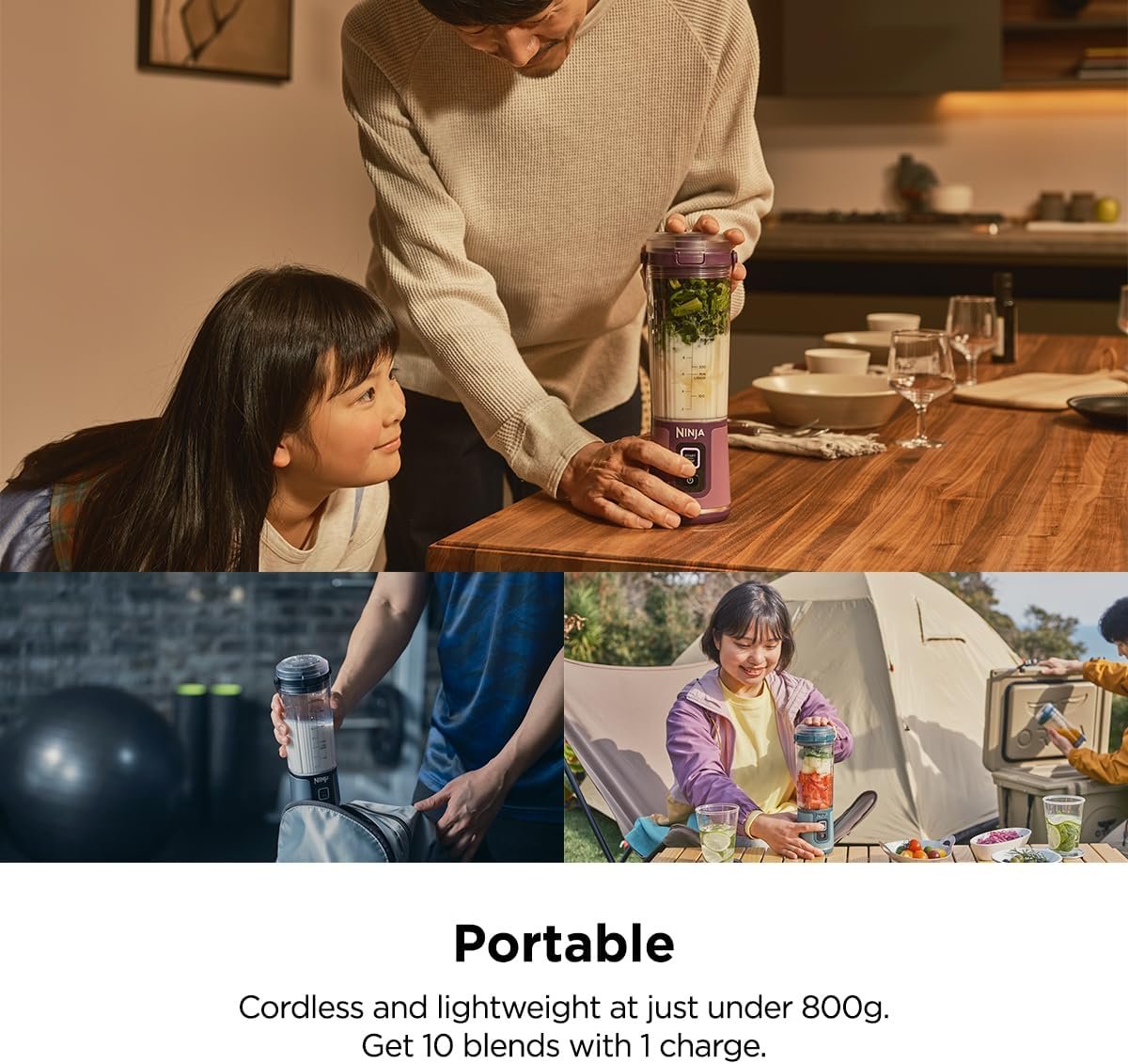 • NINJA BLENDING ANYWHERE: Blast through frozen ingredients with Ninja’s best portable blending power. Make perfectly smooth drinks anywhere you go