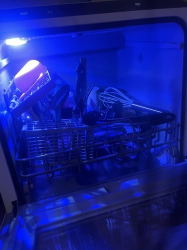 2) There is no option to turn on the light at any time to check on the dishes. I thought there was based on some of the photos and videos but nope. The light only turns on when you open and close it. I've tried using my phone flashlight to look in but because of the water splashing and that it gets foggy I can't see anything. It is important to see inside because the water will sometimes push the items out of place and there has been a couple times when something slipped down and the bottom spinning water dispenser gets caught and can't move! Same with the top one, sometimes you don't realize how high the dishes are and it can stop the propeller from spinning.